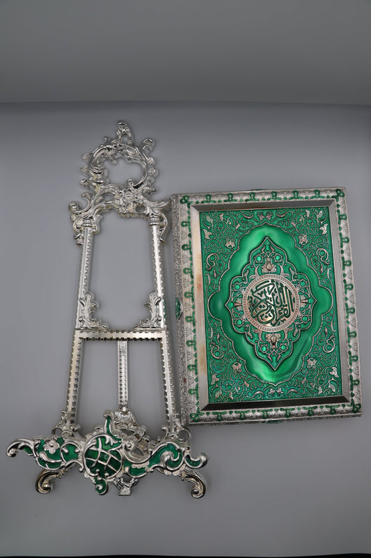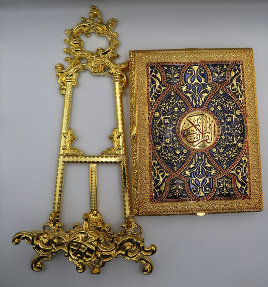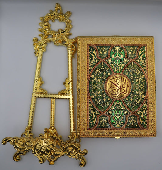 Metal Quran Box & Holder - Gold, Emerald & Ruby